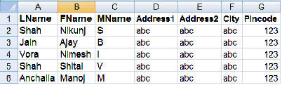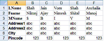 18. Convert rows into columns? Well, consider this. You have created a sheet wherein headings like LName, FName, MName, Address1, Address2, etc, are arranged in rows while records appear as columns besides these headings (see Figure below).